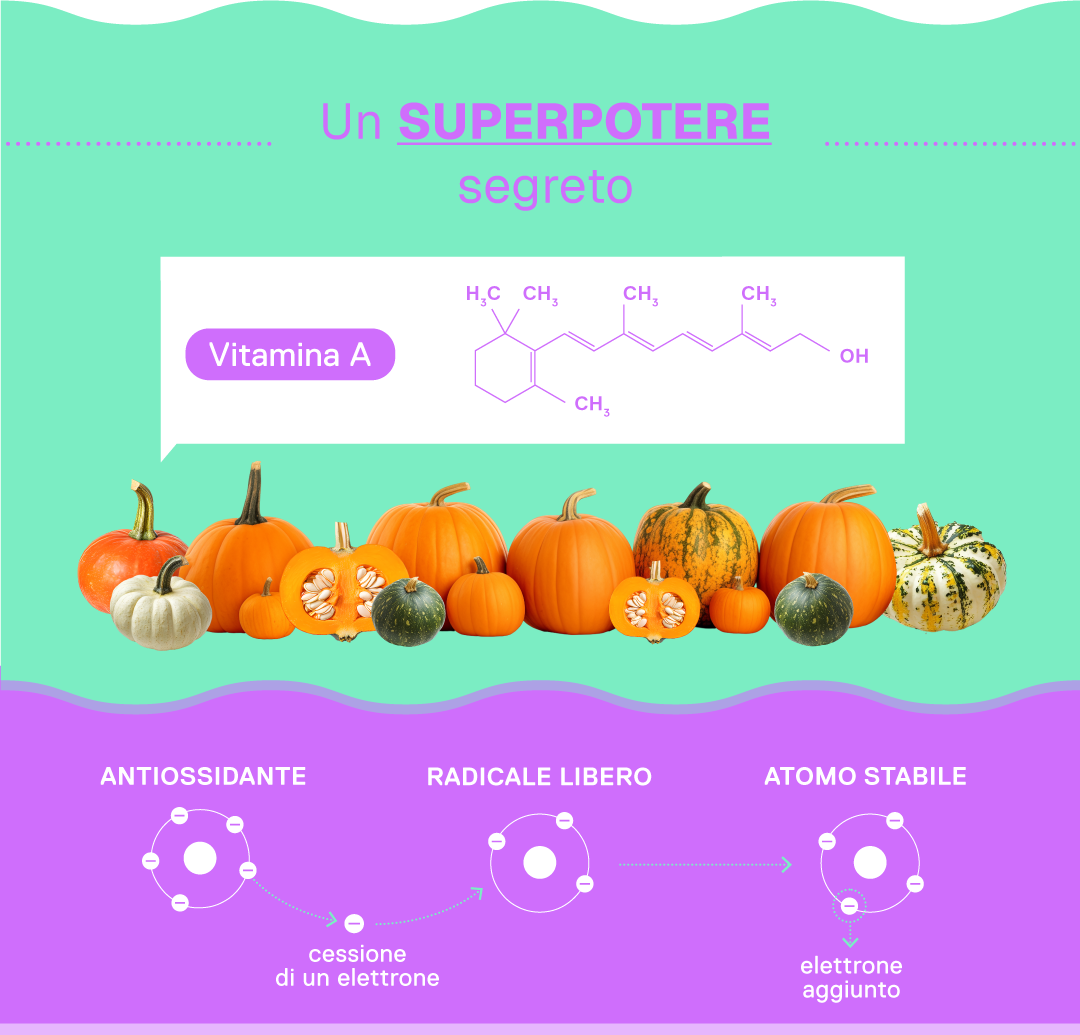 il beta-carotene, una volta ingerito, viene trasformato nell’intestino e immagazzinato nel fegato come vitamina A, una molecola dall’effetto antiossidante che aiuta a proteggere le cellule dai radicali liberi.